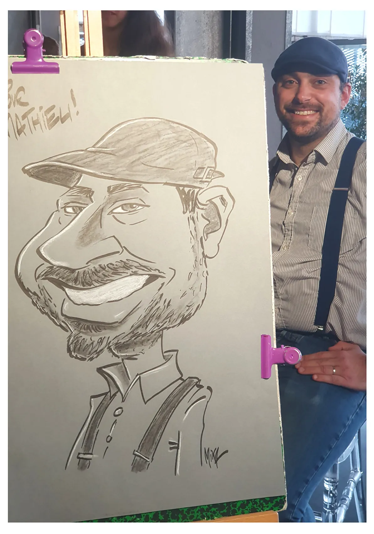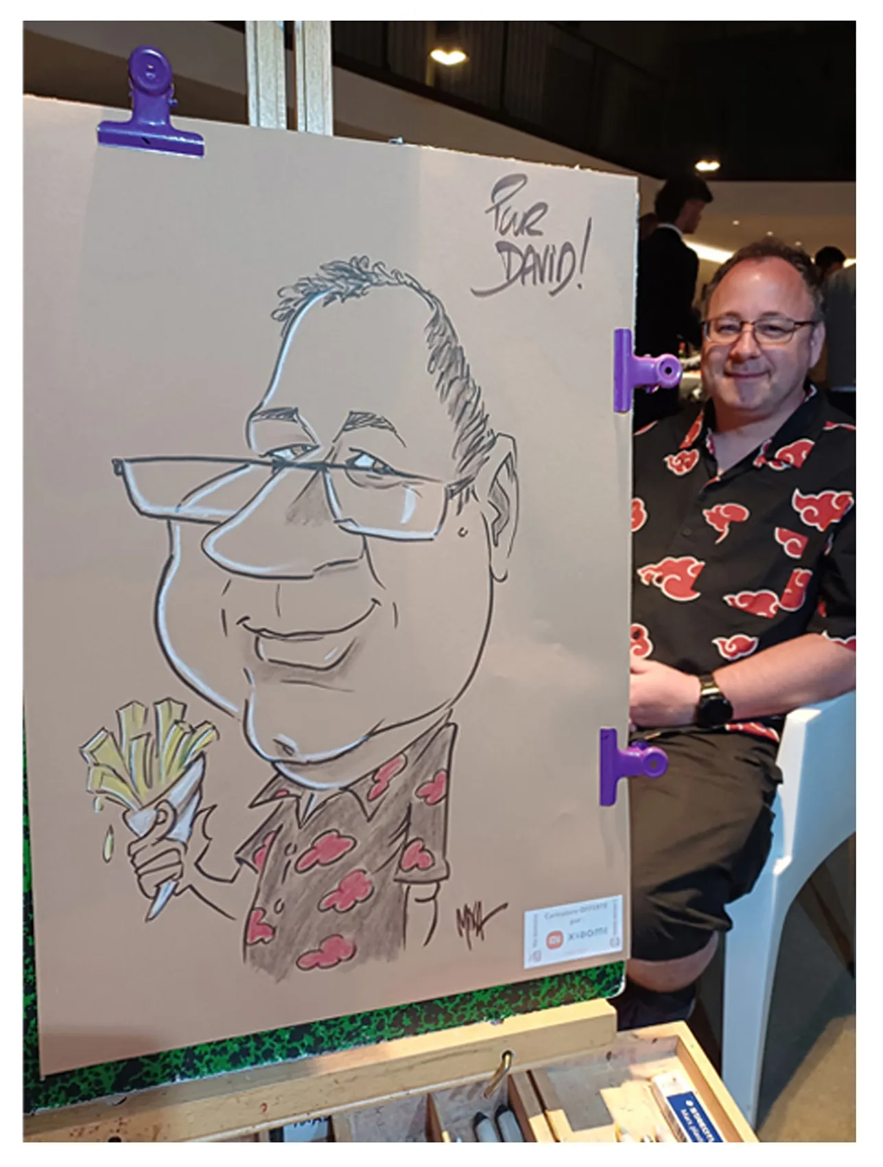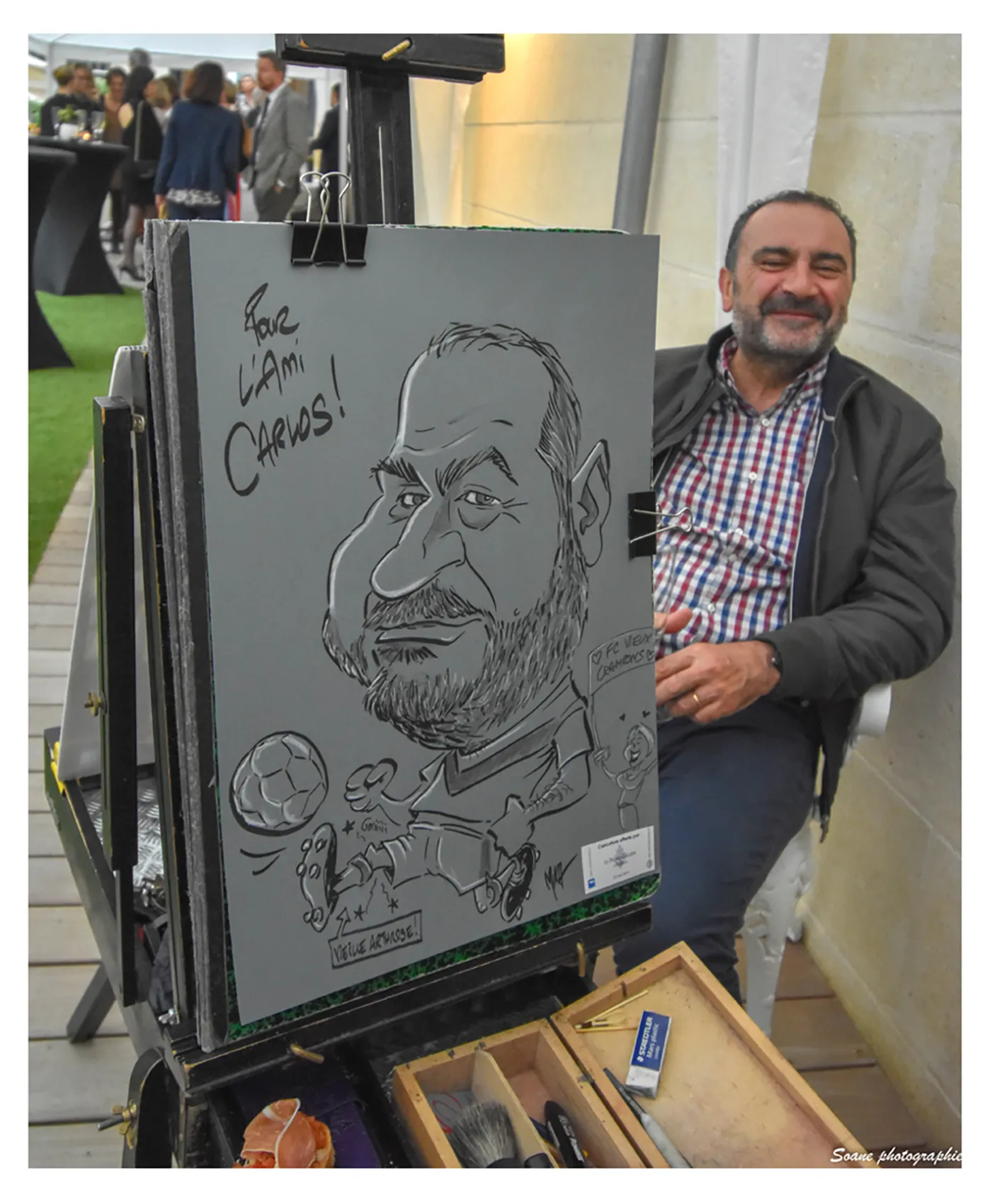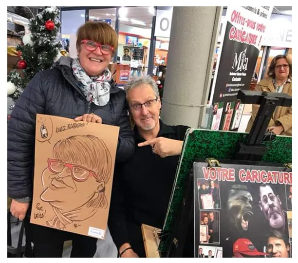 Cela peut être aussi des invités présents, qui durant une quinzaine de minutes viendront poser et pourront ainsi repartir avec leur caricature géante !