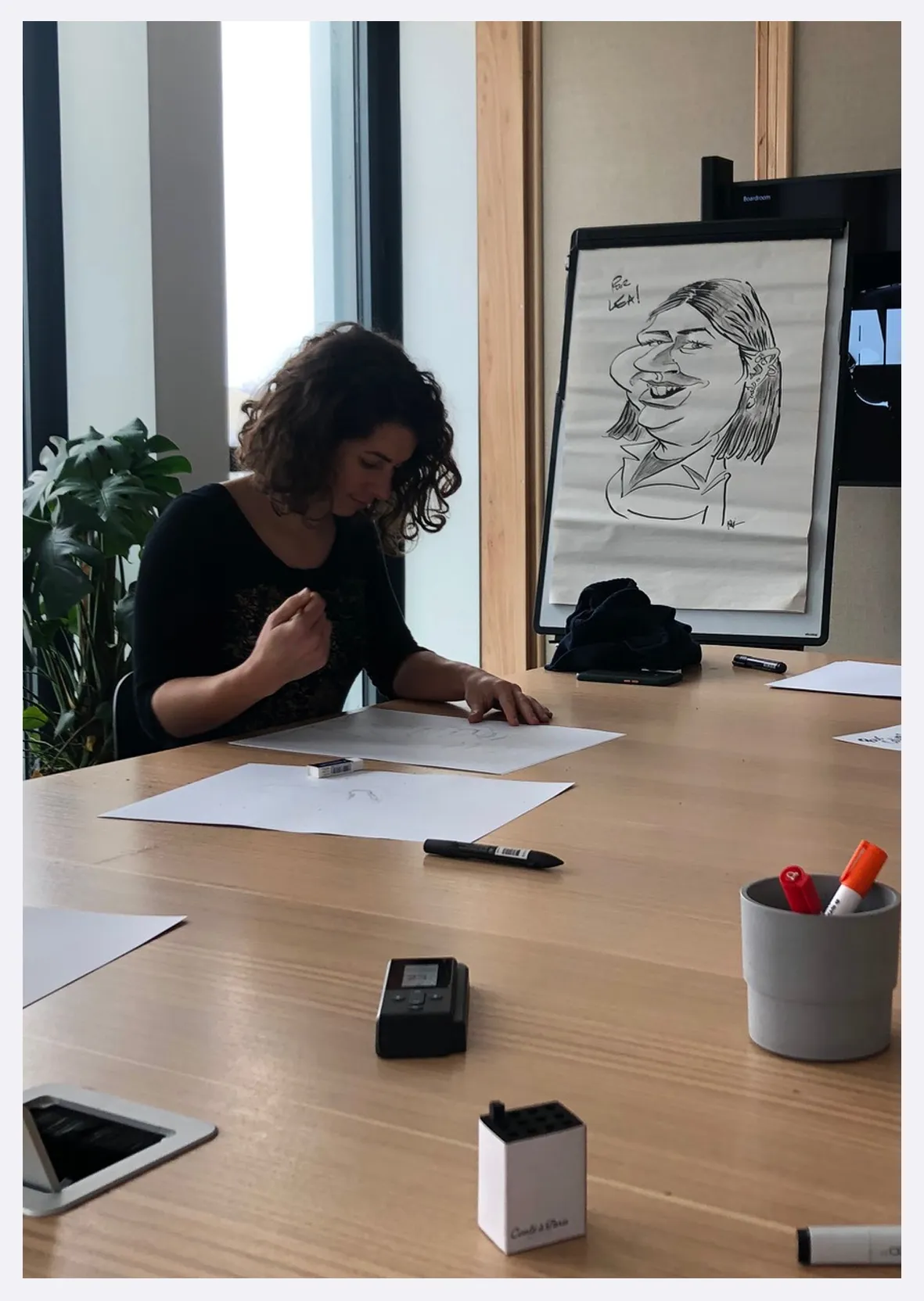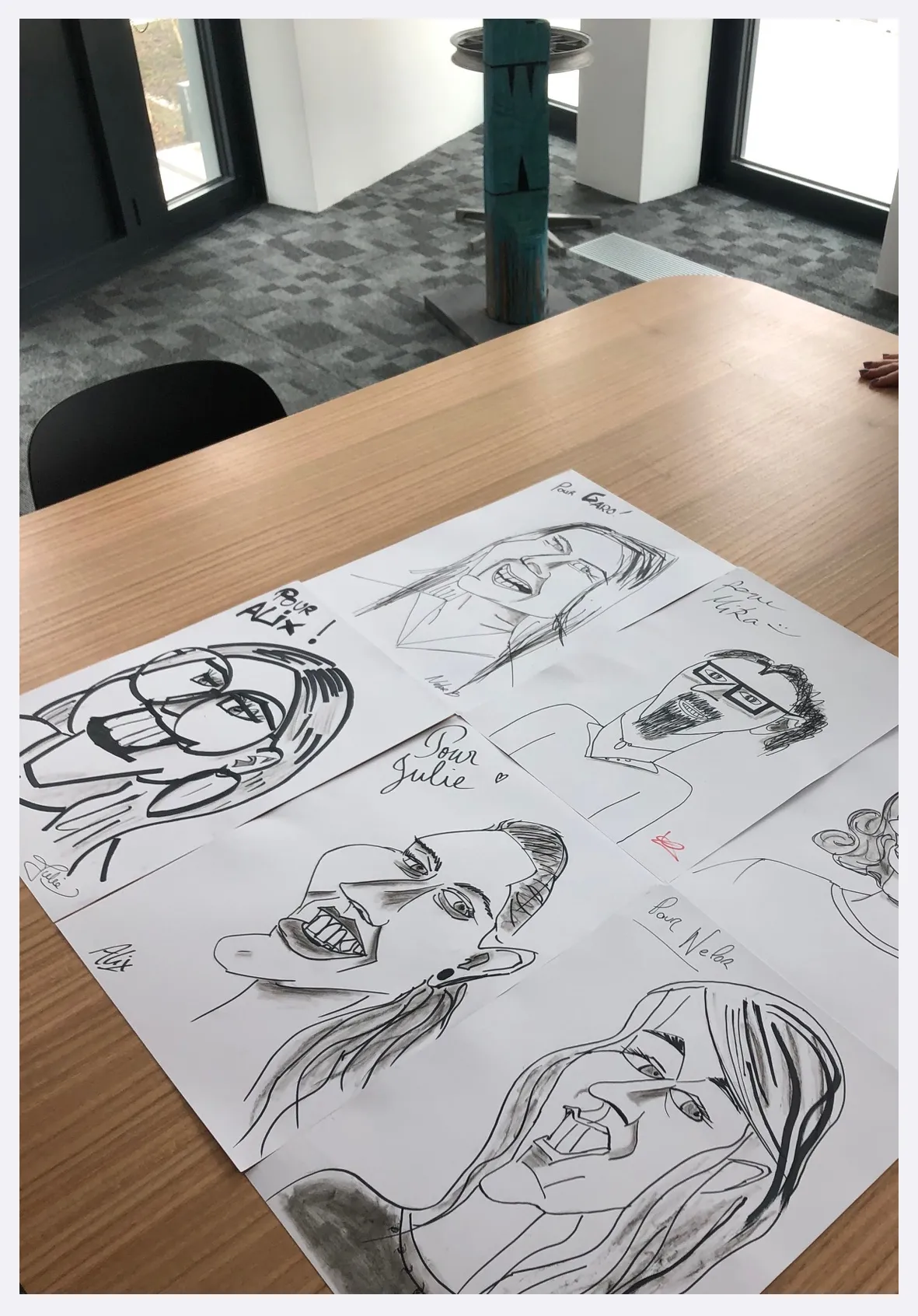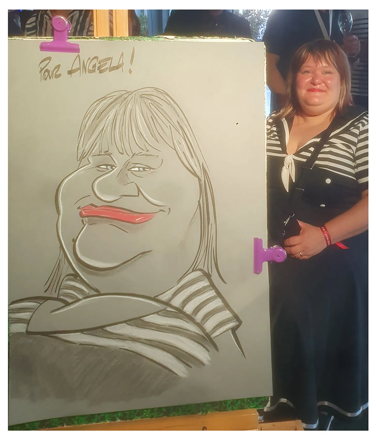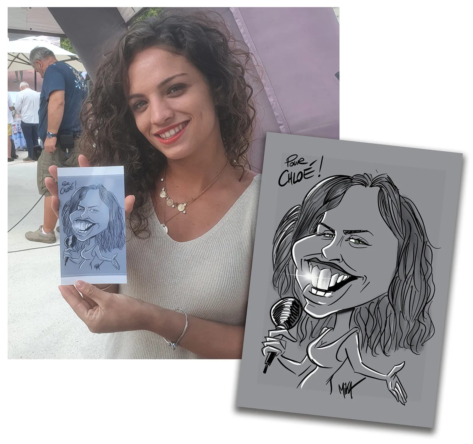 Cela peut être aussi des invités présents, qui durant une quinzaine de minutes viendront poser et pourront ainsi repartir avec leur caricature géante !