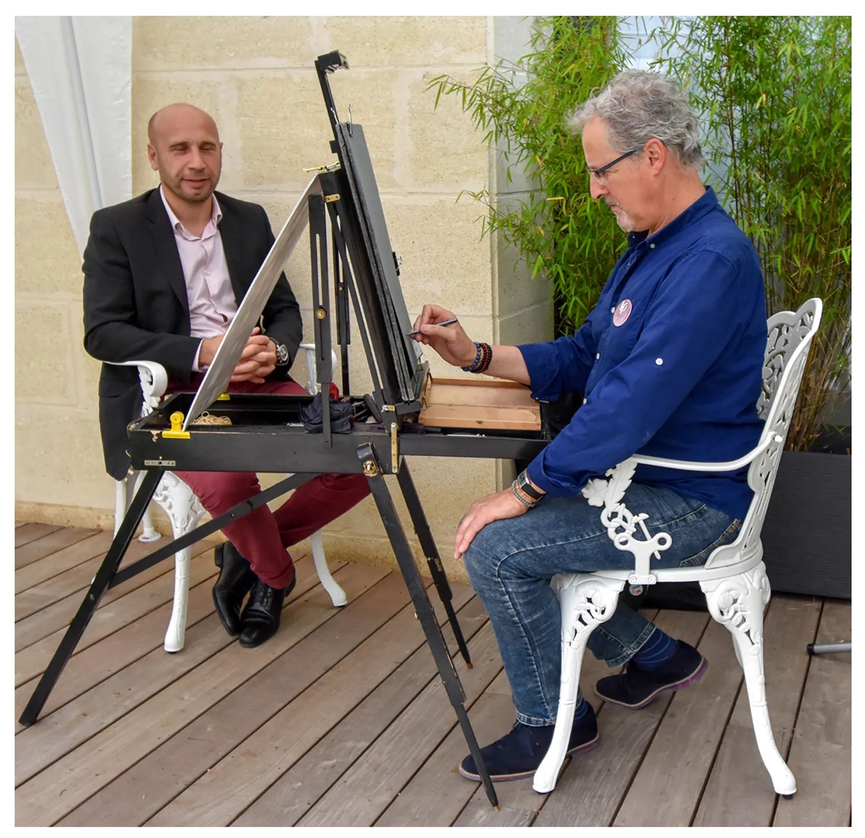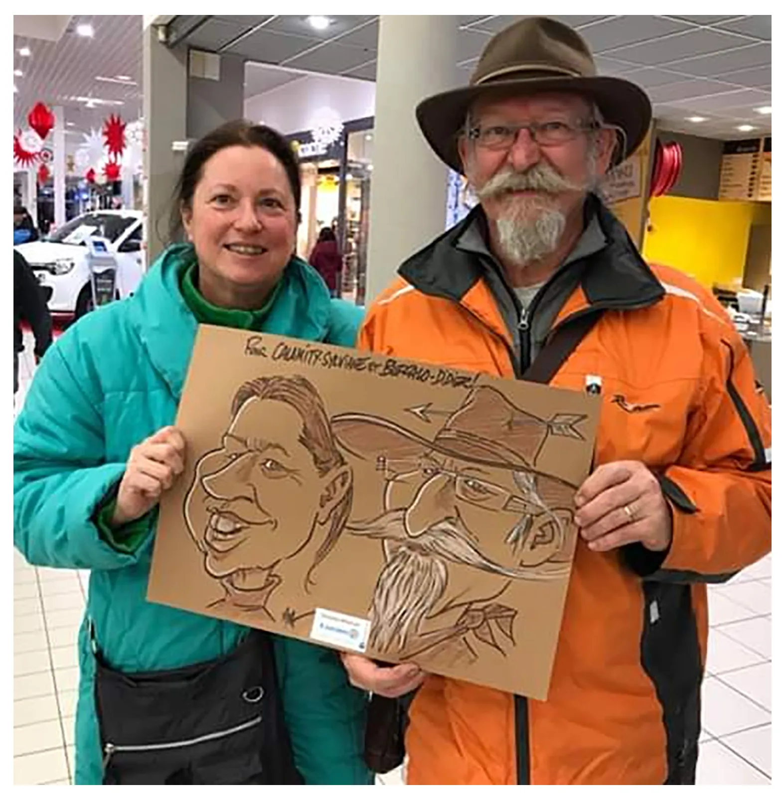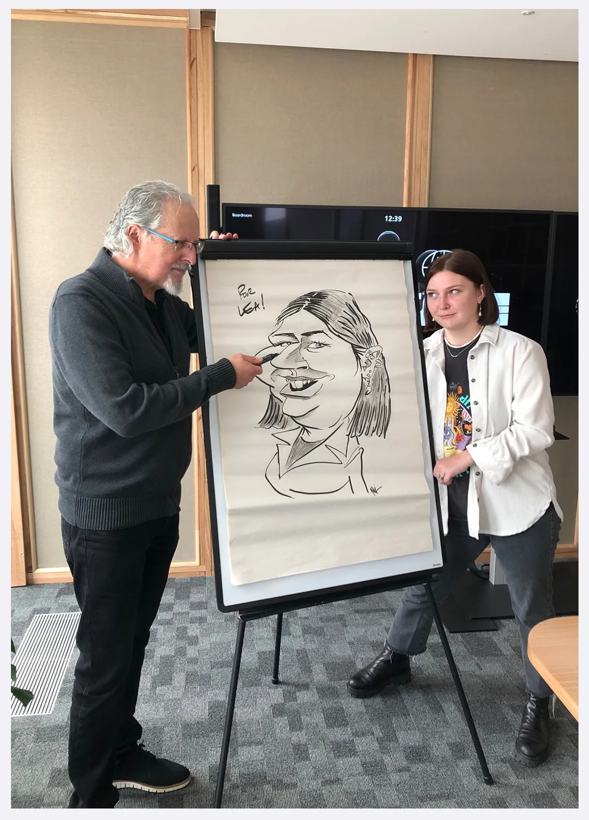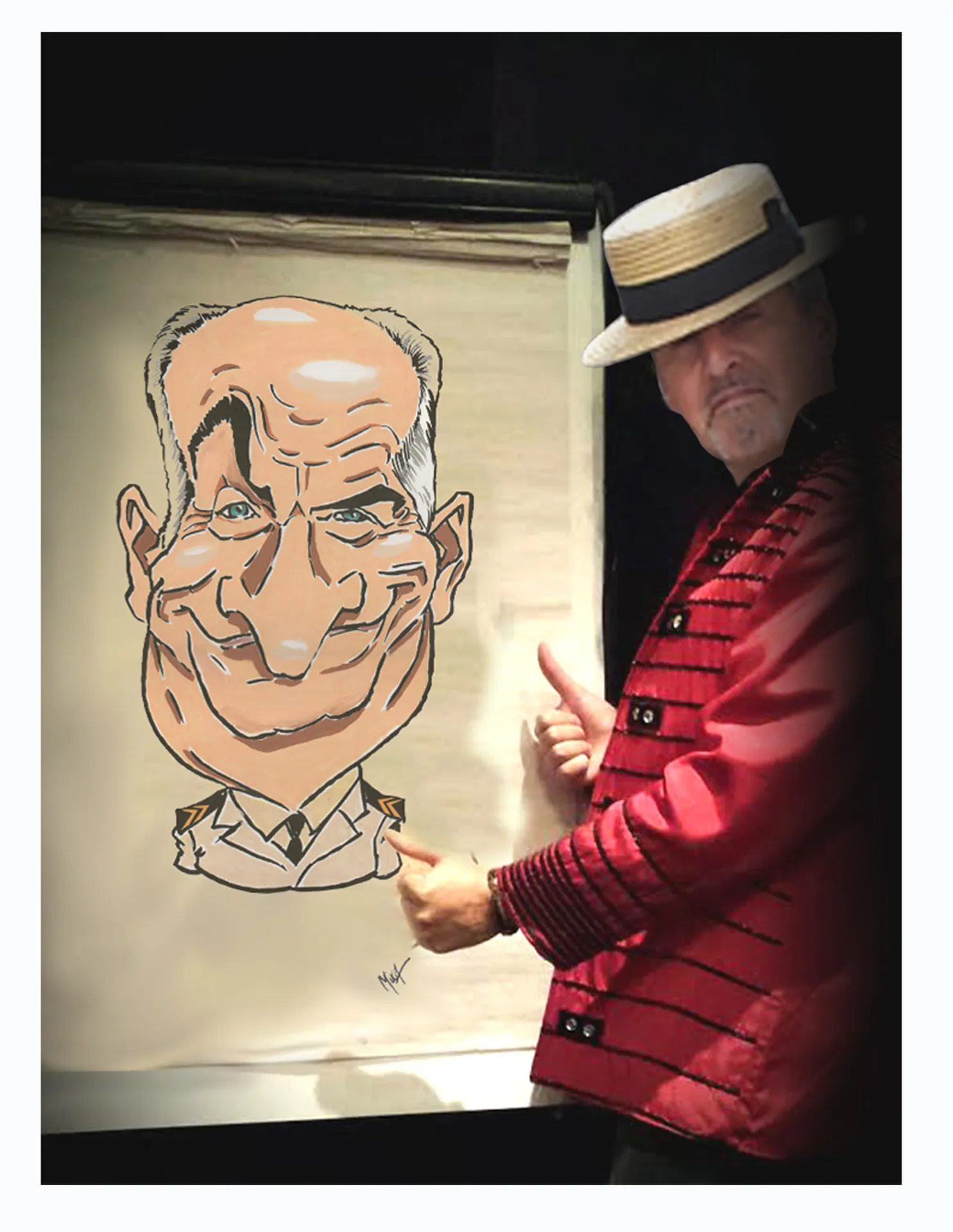 Cela peut être aussi des invités présents, qui durant une quinzaine de minutes viendront poser et pourront ainsi repartir avec leur caricature géante !